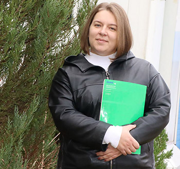 Надежда Мельник родилась в деревне Радутичи Осиповичского района. На своей малой родине живет и сегодня, отсюда ежедневно ездит на работу. Заочно окончила Белорусскую государственную сельскохозяйственную академию по специальности «экология сельского хозяйства». В своей нынешней должности работает с 2010 года, с третьего курса вуза. Она председатель первичной профсоюзной организации филиала. Общественная деятельность ей нравится: вникает в проблемы людей, оказывает им помощь. Очень любит свою основную работу — ответственную, но интересную. Это получение разрешительных документов, а также соблюдение норм экологического законодательства. Кроме того, она еще занимается делопроизводством в своем филиале. Была занесена на Доску почета предприятия, имеет поощрения руководства и профсоюзные награды. Кроме того, является депутатом Дарагановского сельского Совета депутатов, председателем первичной организации БРСМ в своем трудовом коллективе.